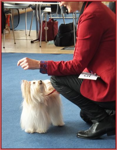 Beurteilung: eine hoffnungsvolle kleine Hundedame welche sich schon wie ein "alter erfahrener Hase" im Ring präsentiert